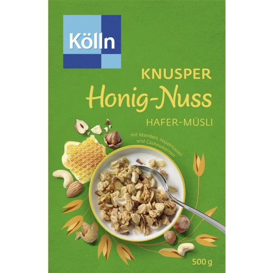 Die knackige Nussmischung bestehend aus gehobelten Mandeln, gehackten Haselnusskernen und Cashewkernen ist perfekt abgestimmt mit honigsüßen Knusperstückchen.